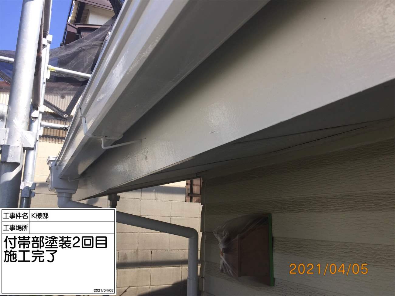 付帯部は基材や使用する塗料などにもよりますが上塗りを2回行って完了になります。