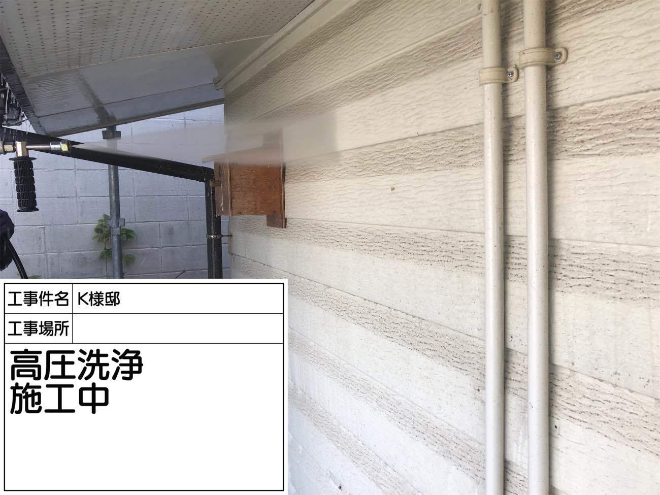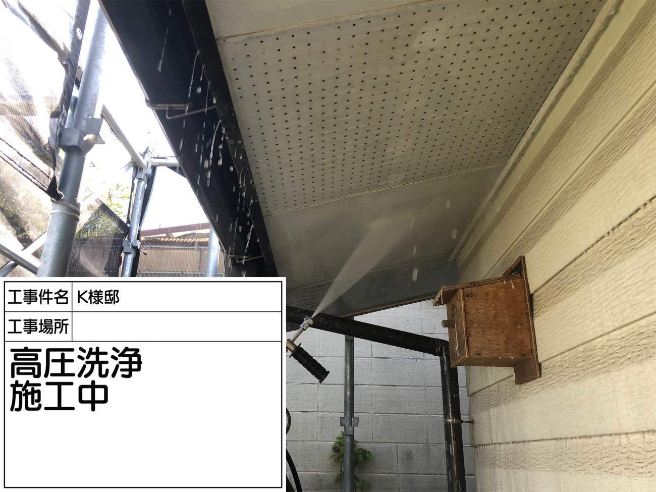塗装前にはまず高圧洗浄を行っていきます。付帯部であっても塗装箇所は原則すべて洗浄します。