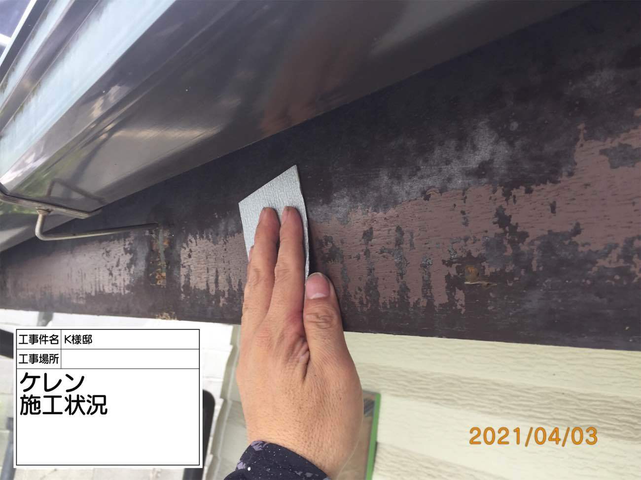 表面の塗膜が剥がれている部分を削り取り毛羽立ちをならします。