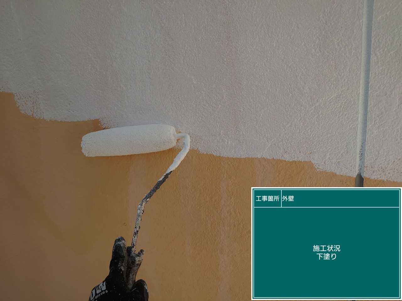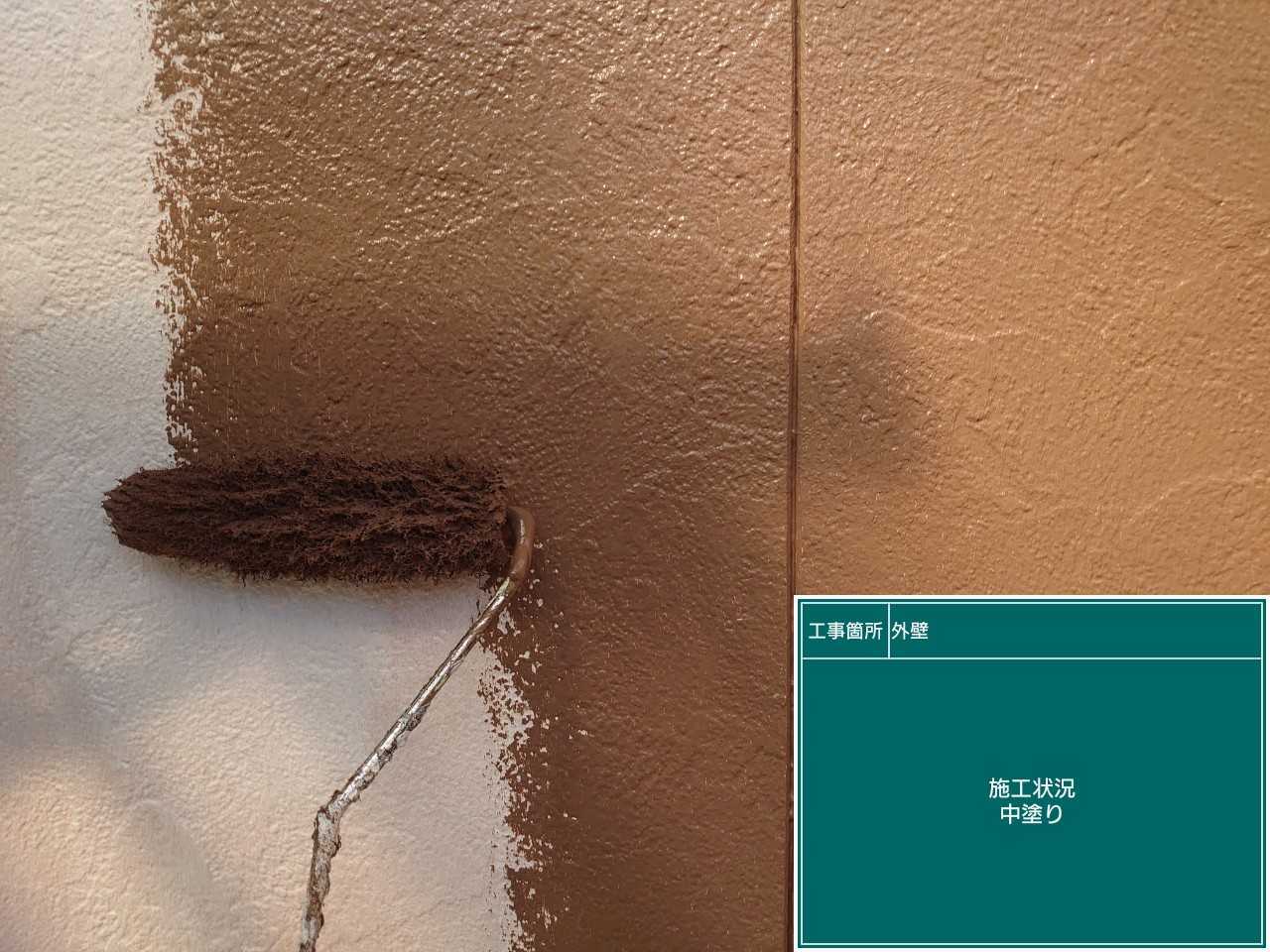 次に中塗りを行います。下塗りで密着性を高めて、中塗りで上塗りの補強を行います。