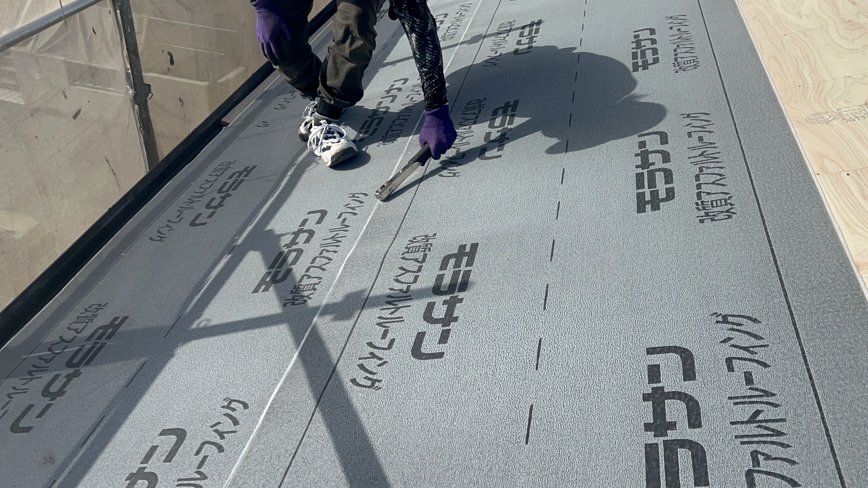 屋根材だけでは完全に雨水を防ぐことができず、隙間や継ぎ目から雨水が内側に入ってしまうので、ルーフィングを敷いて防水しているのです。屋根材の内側に入り込んだ雨水が野地板に染み込んだり、内部に浸入するのを防ぐ重要な役割をしているがルーフィングです。