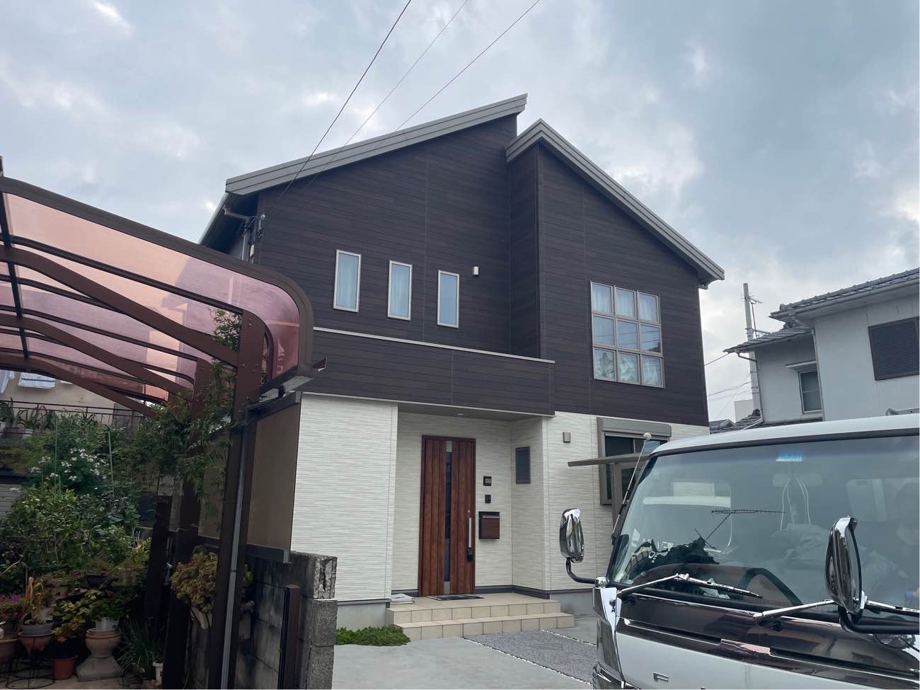 - 築20年以上が経過した住宅で、外壁・屋根ともに退色と劣化が進んでいました。外壁にはチョーキング現象が広がり、シーリング部分のひび割れも多数。屋根はコロニアル特有の退色と苔の繁殖が見られ、防水機能が低下している状態でした。 まず、下地処理を徹底することからスタート。外壁はキクスイロイヤルサーフで微細なクラックを補修し、滑らかで密着性の高い下地を形成。屋根はエポックマイルドシーラーで劣化部分を補強してから深碧雅を2回塗り重ね、耐久性と艶を両立させました。 深碧シリーズは高い防汚性と色持ちの良さが特長で、塗り上がり直後の鮮やかさだけでなく、数年後の美観も期待できます。施工後はまるで新築時のような艶と輝きを取り戻し、お客様からも「想像以上にきれいになった」と大変ご満足の声をいただけました。