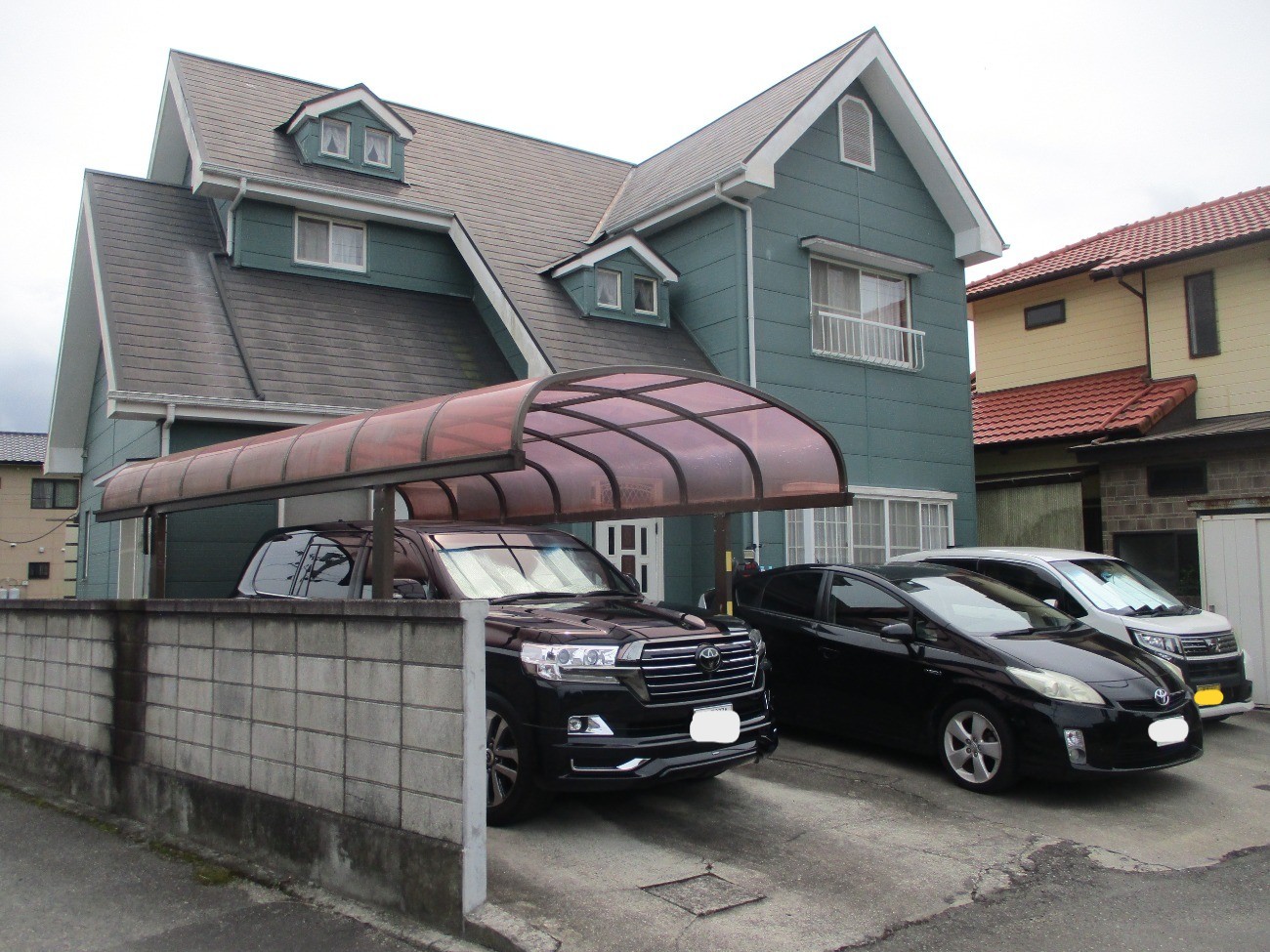 - 今回のお住まいは、外壁・屋根ともに経年による退色が進んでおり、特に南面のチョーキングとシーリングのひび割れが顕著でした。屋根もコロニアル特有の塗膜剥離や苔の繁殖が見られ、雨水を弾く力が弱まっている状態でした。 工事では、まず高圧洗浄で外壁と屋根に付着していた汚れ・苔・旧塗膜をしっかり取り除き、素地を清潔な状態へ。外壁目地のシーリングは全て撤去し、打ち替えを行うことで、雨水侵入リスクを根本的に改善しました。 その後、外壁には「キクスイロイヤルサーフ」を丁寧に塗布し、微細なクラックを埋めながら上塗りの密着性を向上。深碧を2回重ねることで艶やかで高級感のある外壁が完成しています。屋根は「エポックマイルドシーラー」で弱った下地を補強し、深碧雅で重厚感ある仕上がりを実現しました。 完成後は外壁と屋根の色艶が際立ち、「家全体が明るく若返ったようだ」とお客様にも大変お喜びいただけました。